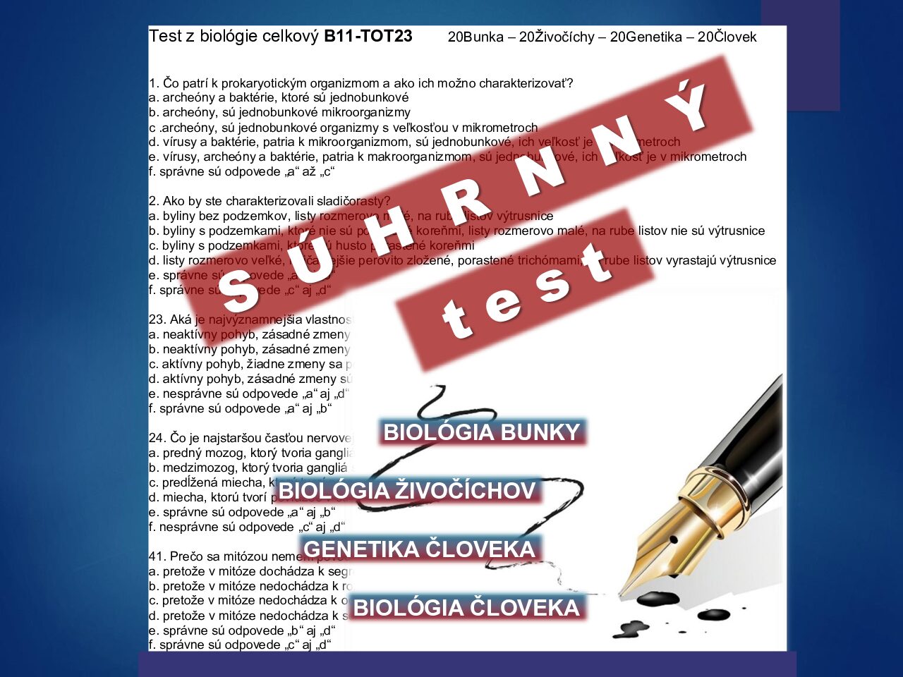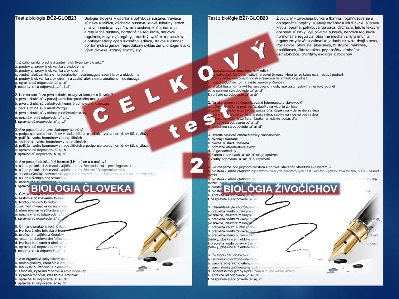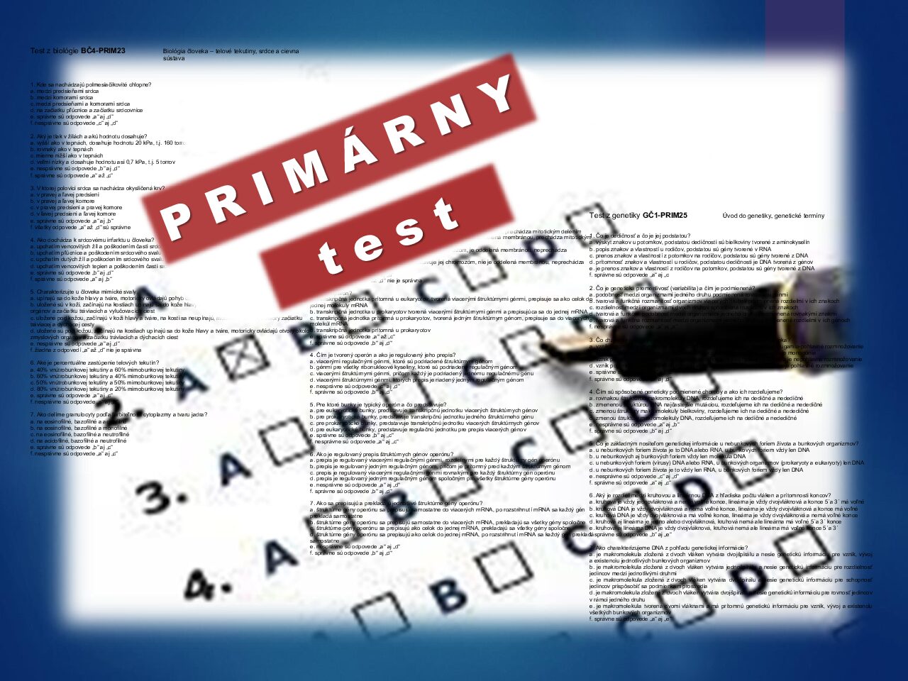 Test primárny. Tieto testy sú vypracované tak, že v nich sú otázky stavané väčšinou z jednotlivých kapitol príslušných oblastí biológie, predovšetkým z genetiky človeka a biológie človeka. Z každej oblasti je vypracovaných 10 testov, každý …